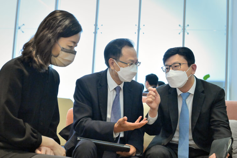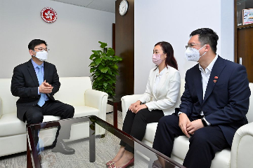 The Secretary for Labour and Welfare, Mr Chris Sun, and the Under Secretary for Labour and Welfare, Mr Ho Kai-ming, today (July 22) met with the Political Assistant to Secretary for Labour and Welfare, Miss Sammi Fu, to exchange views on labour and welfare issues.