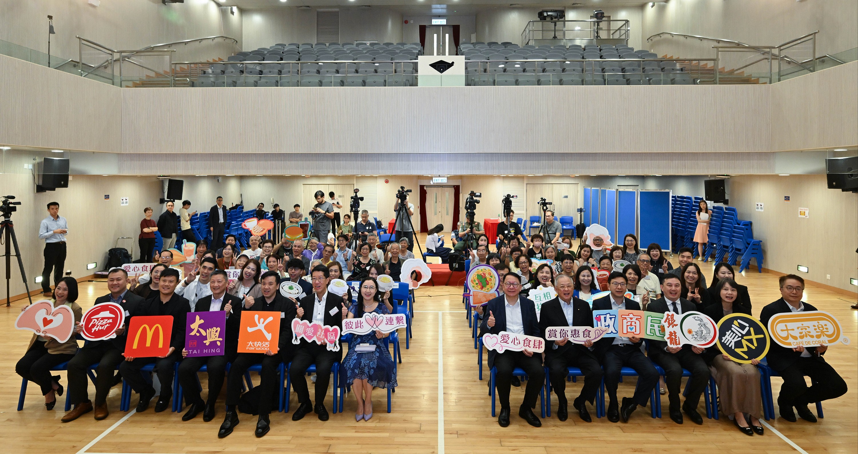 政府今日(一月十四日)舉辦「愛心食肆 賞你惠食」啓動禮,向有需要長者派發餐飲優惠券,傳達社會對長者的關懷。圖示政務司司長陳國基(中)、立法會議員張宇人(左四)、勞工及福利局局長孫玉菡(右四)、勞工及福利局常任秘書長劉焱(右三)、大快活市務部總監劉向榮(右一)、大家樂集團總經理(香港快餐)盧國輝(右二)、太興集團總經理兼中式佳餚董事何小鋒(左三)、美心集團快餐總監范滿強(左二),以及香港麥當勞數碼體驗高級總監曾啟豐(左一)為活動主禮。
