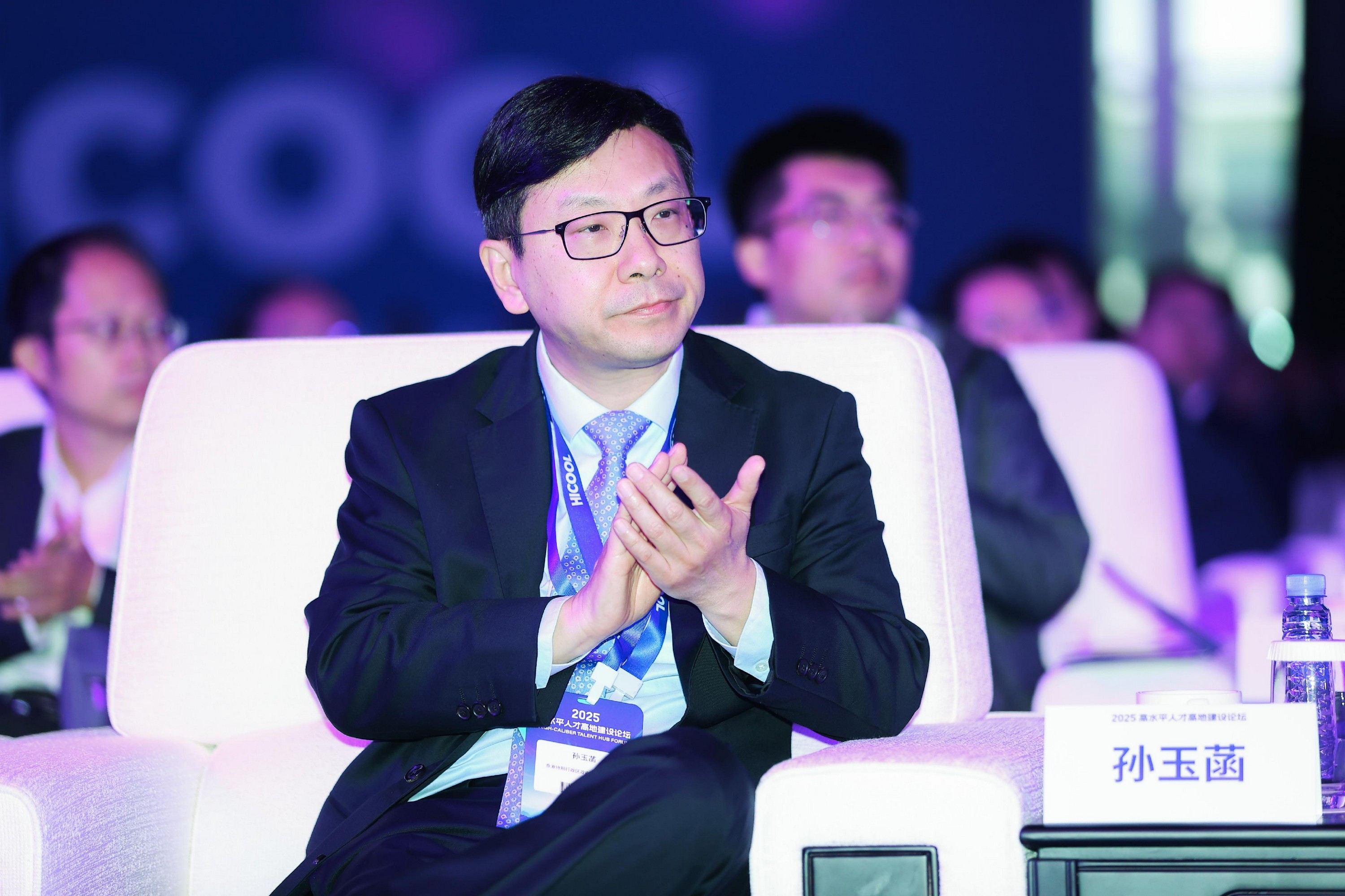 勞工及福利局局長孫玉菡今日(十月十七日)結束為期兩天的北京訪問行程,香港人才服務辦公室總監陳海勁亦有隨行。圖示孫玉菡今日上午出席HICOOL 2025全球創業者峰會高水平人才高地建設論壇。