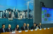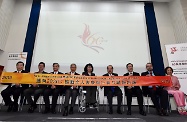 勞工及福利局局長羅致光博士今日(十二月七日)出席「2019精神健康月」同享精神健康體驗日。圖示(左起)本屆精神健康大使李敏、康復諮詢委員會屬下康復服務公眾教育小組委員會主席梁昌明博士、羅致光博士、勞工及福利局康復專員陳詠雯和「2019精神健康月」籌備委員會主席馮祥添博士一起主持典禮儀式。