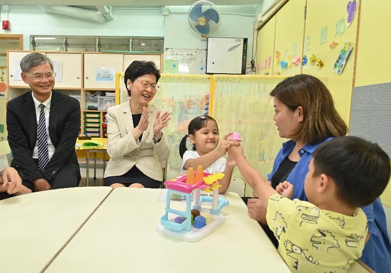 行政長官林鄭月娥及勞工及福利局局長羅致光博士與70多名來自三個福利機構的兒童出席在禮賓府舉行的茶聚。社會福利署署長葉文娟及勞工及福利局局長政治助理馮興禮亦有出席。